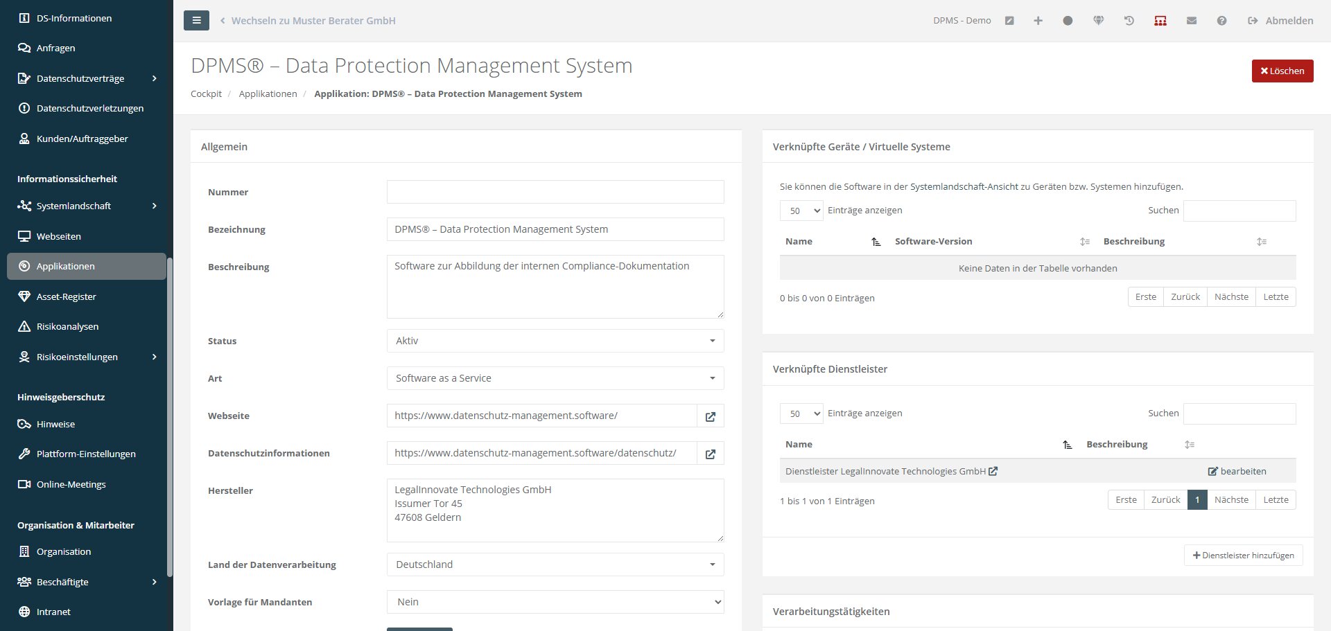 In den Applikationen steht ab sofort ein neues Feld für den Link zu „Datenschutzinformationen“ zur Verfügung.