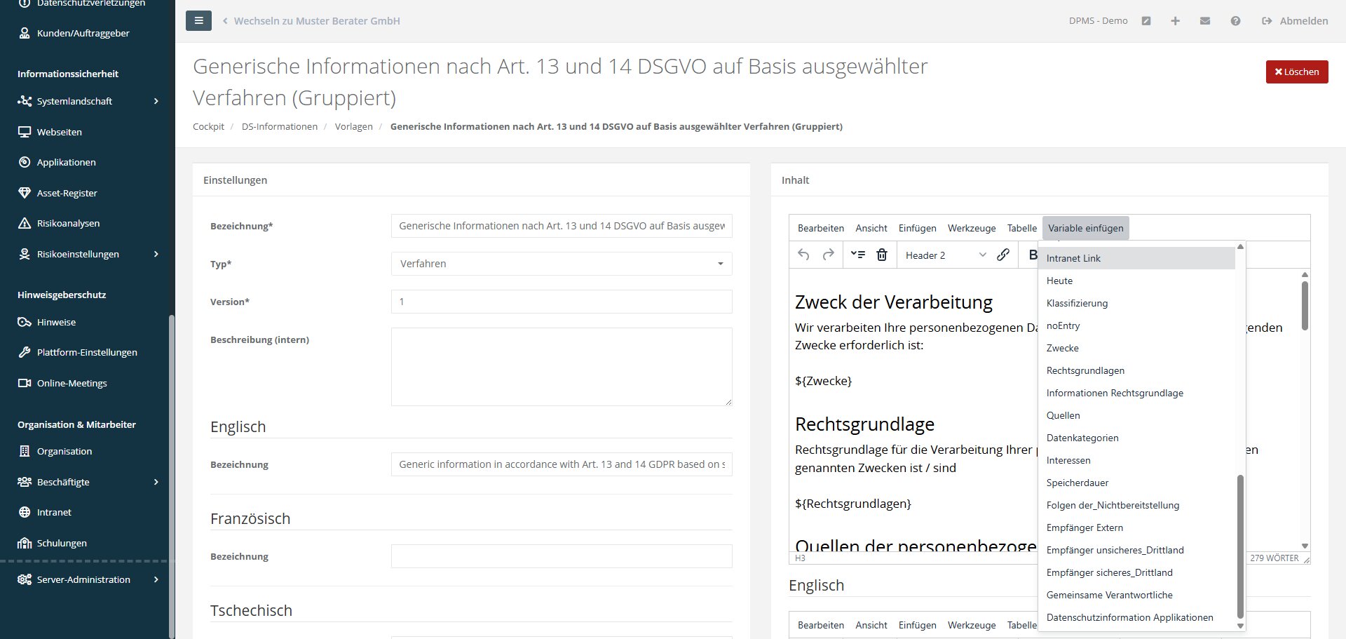 - Der Excel-Export im Verzeichnis von Verarbeitungstätigkeiten wurde angepasst und enthält nun ausschließlich die Hauptsprache der Organisation.