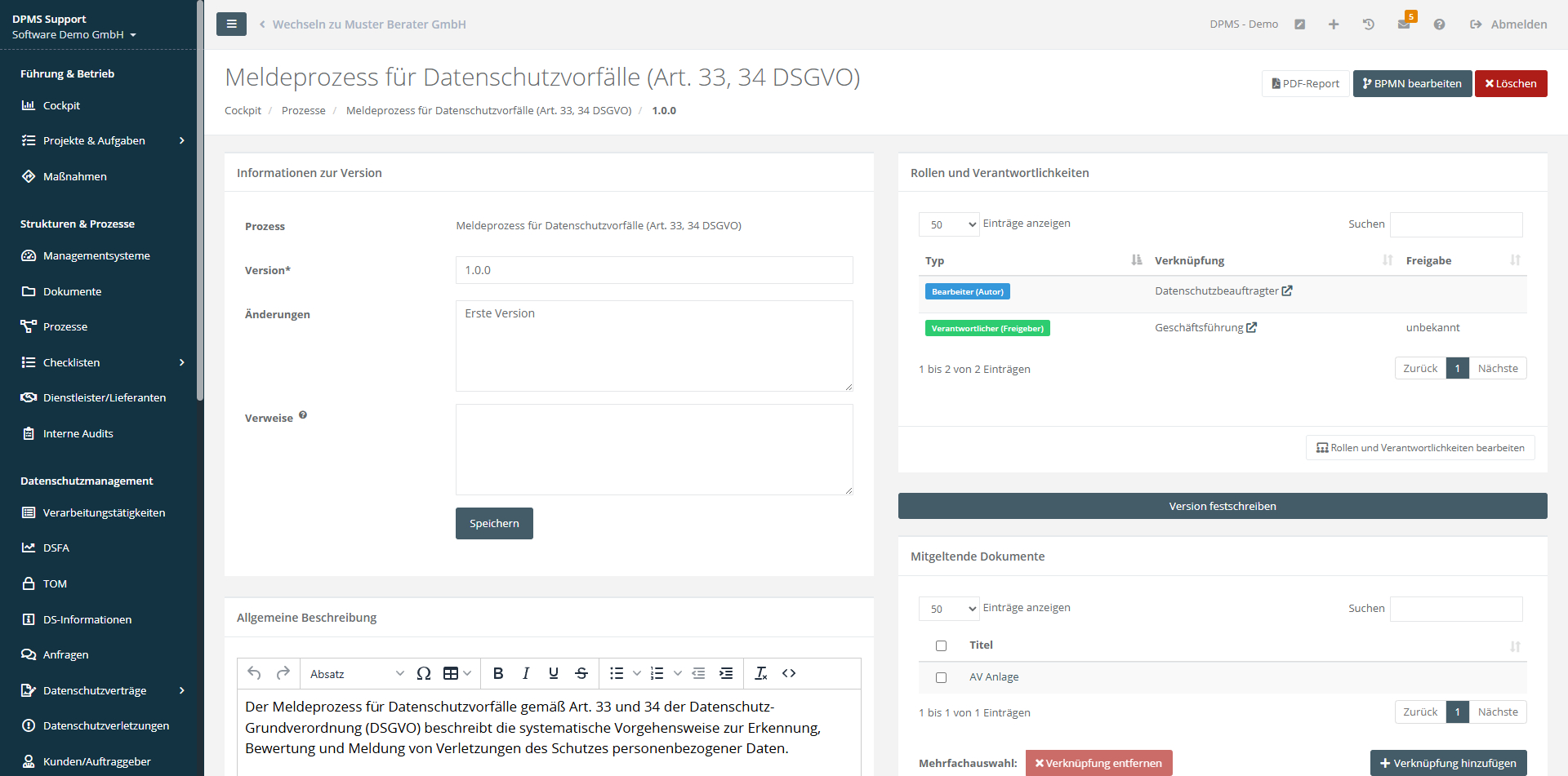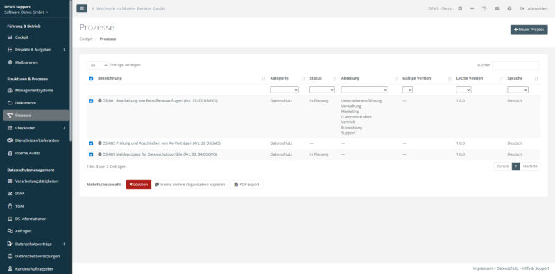 Auf diese Weise werden Datenschutz- und IT-Sicherheitsprozesse übersichtlich und effizient festgehalten.