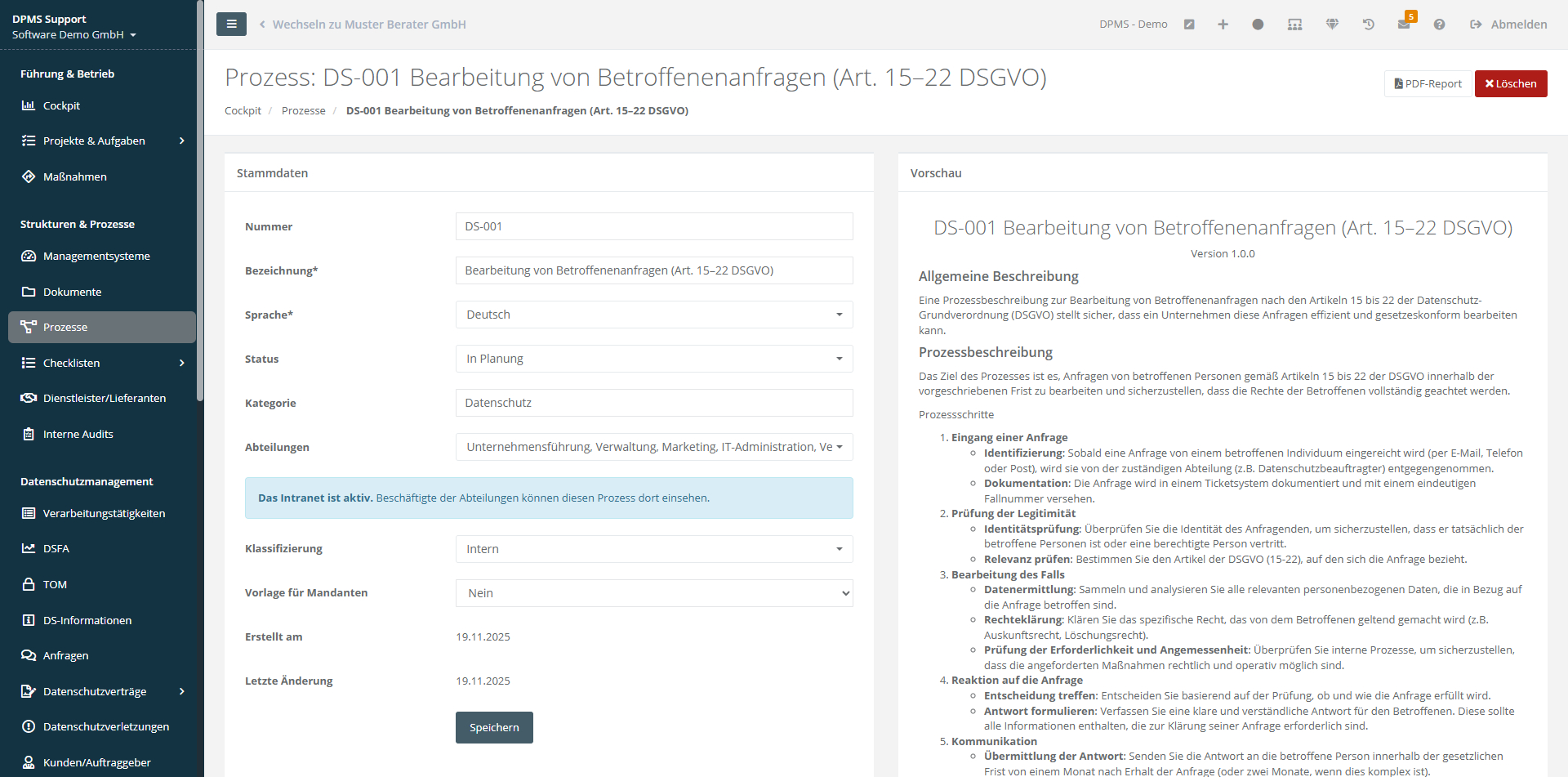 In Kombination mit dem Intranet-Modul stehen die Prozesse anschließend gezielt den entsprechenden Mitarbeitenden zur Verfügung.