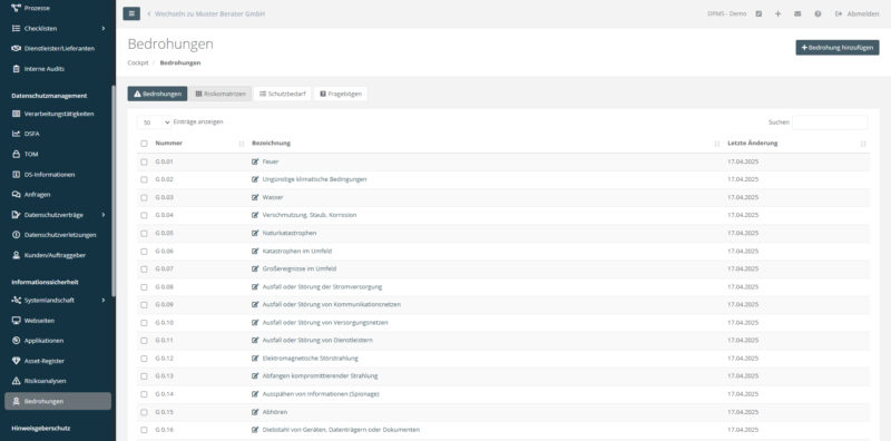 Anschließend definieren Sie relevante Bedrohungen oder greifen auf die BSI-Vorgaben zurück.