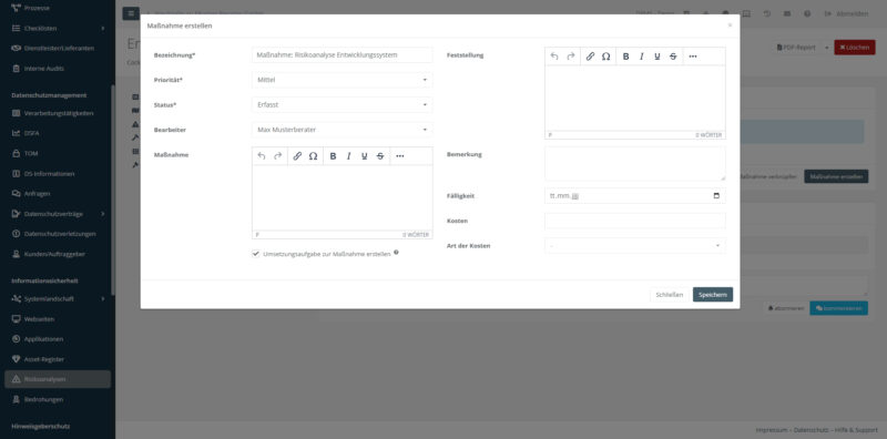 Über die integrierte Revisionsfunktion lassen sich Risikoanalysen überprüfen, dokumentieren und zukünftige Prüfungen gezielt planen.