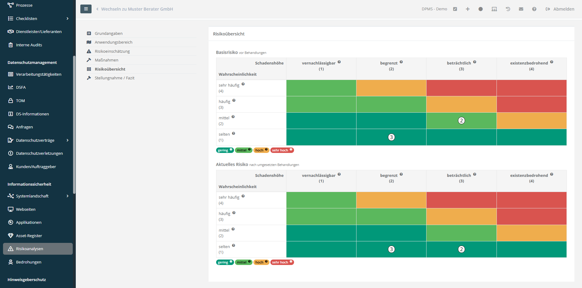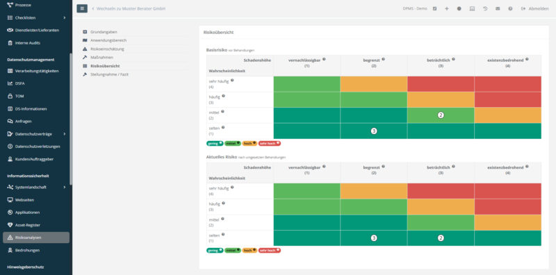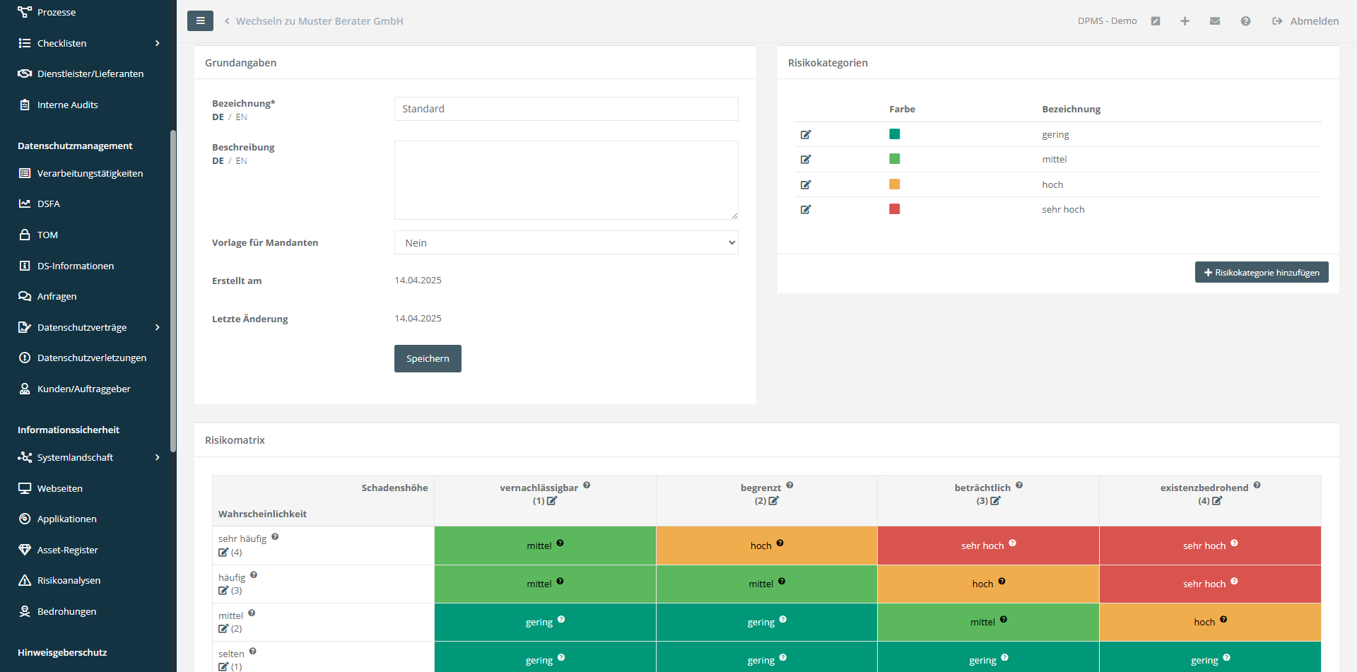 Im Modul Risikoanalyse legen Sie zunächst zentrale Rahmenbedingungen wie Kategorien und Bewertungsmatrizen fest.