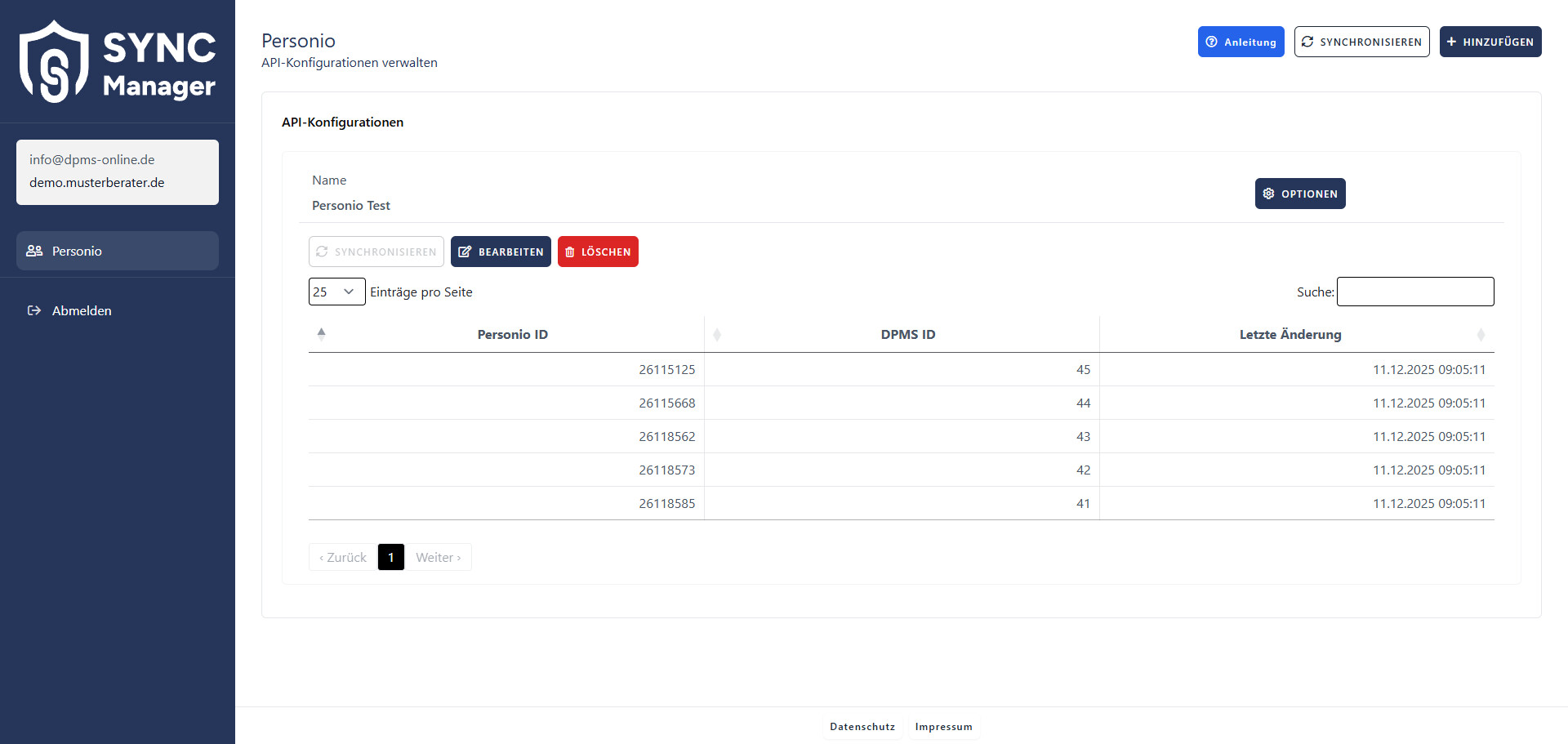 Der Sync Manager bietet eine zentrale Oberfläche, um externe Software-Anwendungen per API mit dem DPMS zu verbinden.