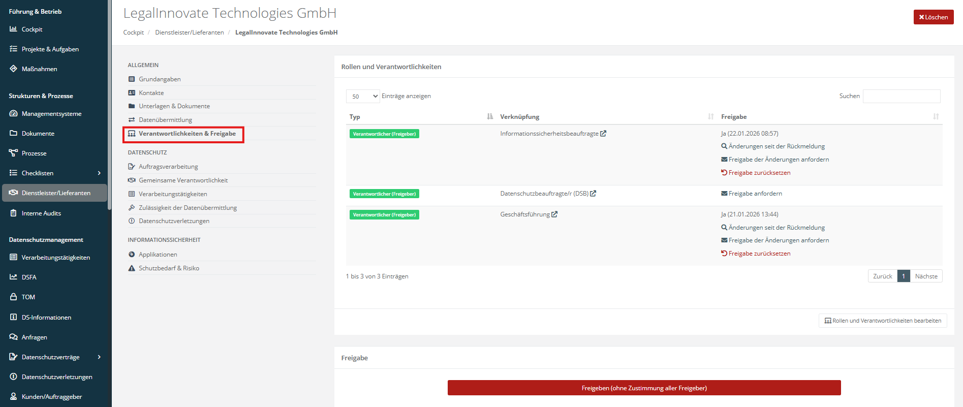 - Integration der Freigabelogik in das Verzeichnis der Verarbeitungstätigkeiten